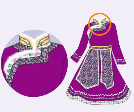 衣襟借鉴蒙古族传统袍子样式,斜襟设计,突出亮点,精致美观。