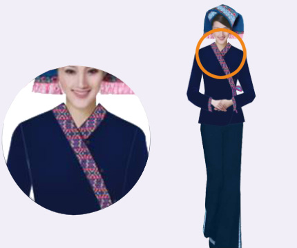 衣襟借鉴壮族传统服饰衣襟样式,进行改良创新,突出亮点,精致美观。