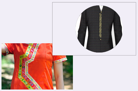 | 3. 上衣 上衣的布料选用结合了当地畲族的服装特色,纹路清晰具有丰富的畲族文化内涵.