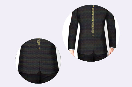灵感来源于莪山畲族服饰的细节特点和民族传统文化内涵,融合民族花纹元素与当地的着装风格,并结合潮流时尚的服饰细节特点,设计特色时尚的民族公务员服装款式,巧妙挖掘和综合运用时尚元素,把现代职业装融入到莪山畲族特色民族公务员服饰中,本着品位,品质,特色的设计理念,把莪山畲族公务员服饰打造成职业装的特色典范,充分体现莪山畲族的民族文化内涵,并赋予民族文化气息。