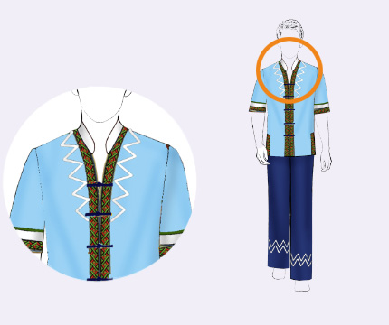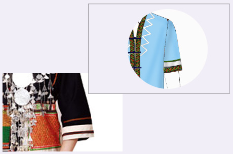 袖子借鉴黎族传统袖型,特色镶边,突出亮点,精致美观。